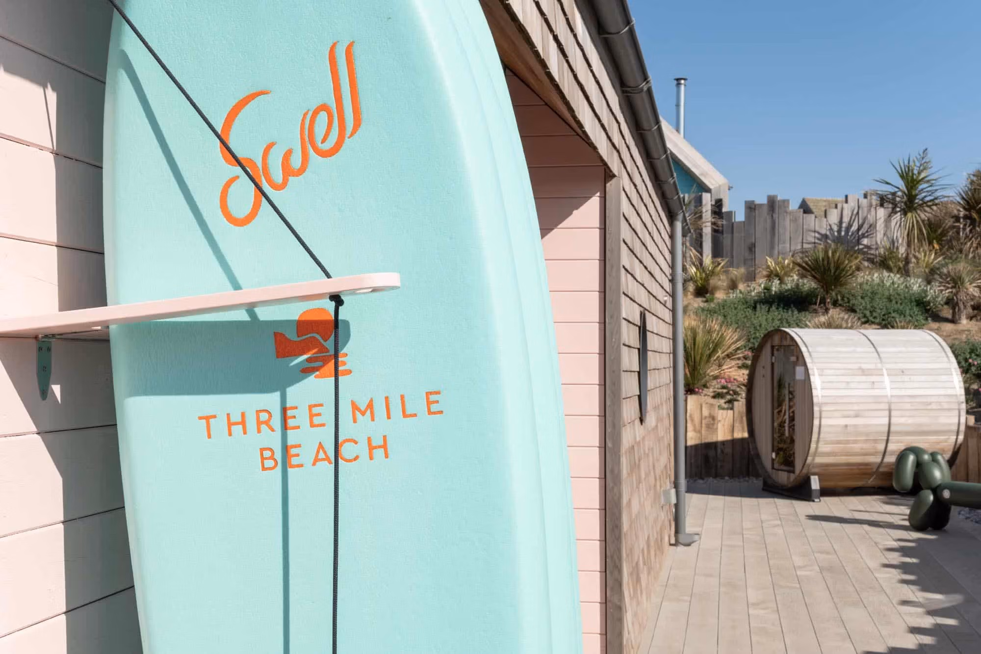 Moments from Gwithian Beach, Three Mile Beach is a collection of two-to-four-bedroom luxury beach houses redefining the self-catering experience with hotel-style amenities on the West Cornwall coast. Each of the beach houses feature open plan living areas, log burners and wrap-around terraces complete with sunken cedar hot tubs, barrel saunas and barbecues for al fresco group dining. Gwithian Beach affords three miles of coastline, perfect for sun-drenched days sea swimming, surfing, paddleboarding and hiking through the dunes. Alongside on-site restaurant Chomp serving a selection of small plates and Cornish favourites, private chefs can prepare feasting nights or three course tasting menus, while Ooni pizza ovens are available to hire, complete with a hamper filled with fresh dough and toppings.