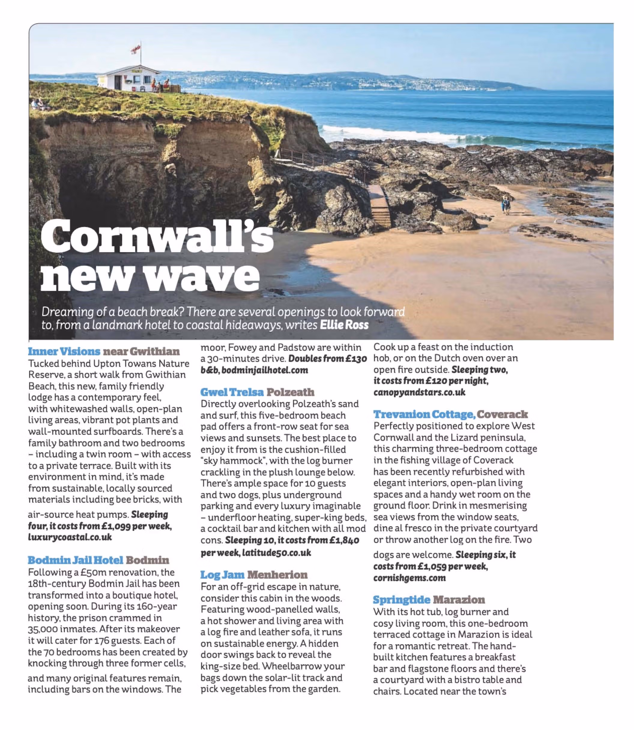 You'd be forgiven for thinking that the appearance of 15 luxury beach houses - bleached wood, barrel saunas, wine cellars and log-burners - three minutes across the dunes from Gwithian Beach in St Ives Bay was a response to the Covid-driven rise in staycations. Actually the project by Craig Burkinshaw, the founder of Audley Travel, has been four years in the making. So it's either extraordinary prescience or pure luck that he's opening Three Mile Beach at Easter in what could be a record season for the British seaside. There's a choice of two, three and four-bedroom houses and, while spring is filling fast, there's still summer availability.