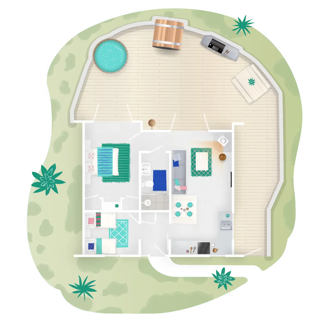 Our beach houses are spacious and light, centred around an open-plan cooking, dining and in-house entertainment area. Kitchens are smart and well kitted-out, while our sofas are deep and cosy.