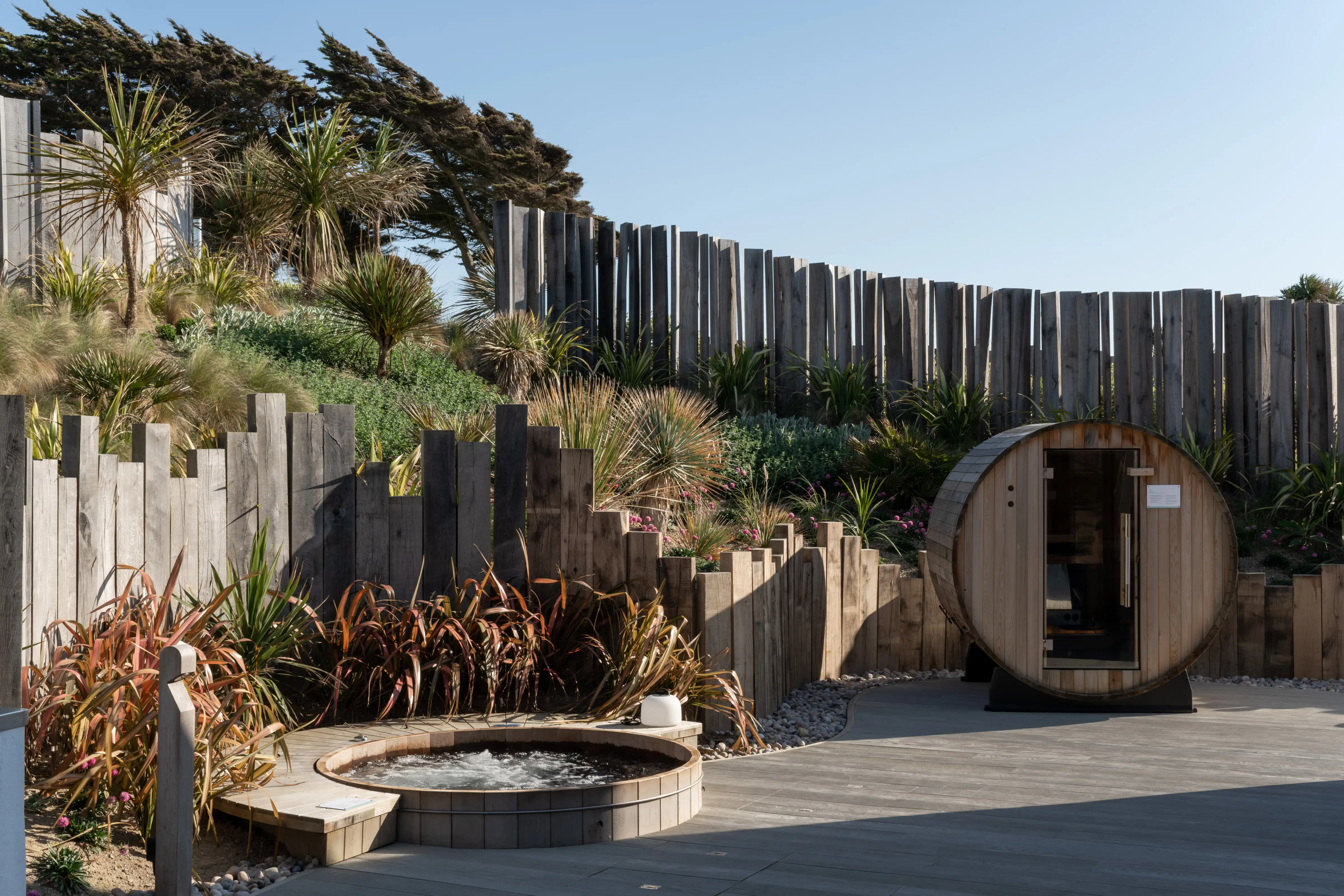 Outside you'll find a private landscaped decking, complete with hammock and loungers, dining table and barbeque, and sunken cedar hot tub and barrel sauna. Put simply, it's your Cornish beach house dream come true.