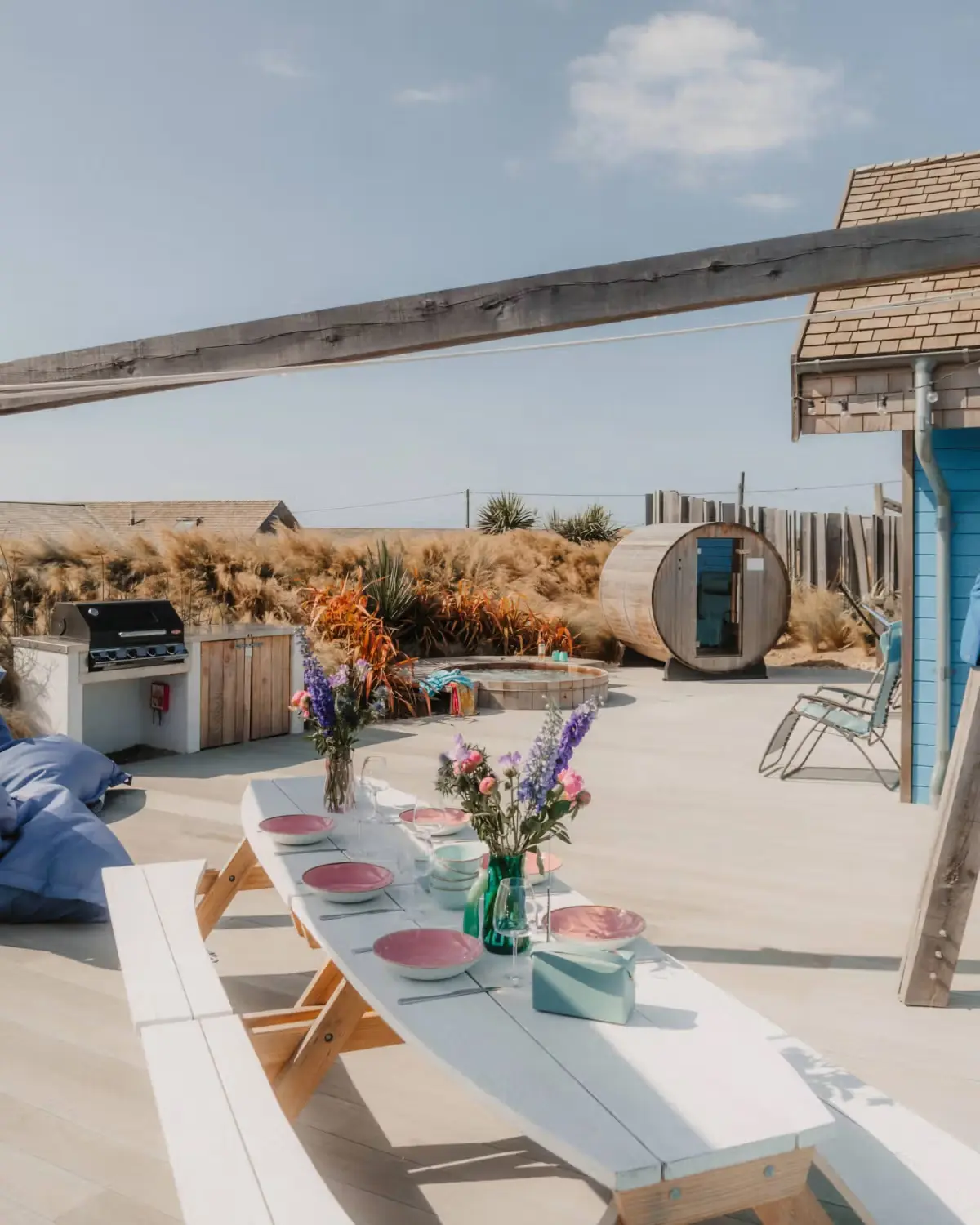 Three Mile Beach was created to redefine the self-catering experience. The privacy and spaciousness of our beach houses make them perfect for family holidays and group getaways. Seamlessly blending indoor and outdoor living, bi-fold doors open onto expansive decking with private hot tubs and saunas. BBQ breakfasts become the norm & we can make sure you have everything you need for the ultimate beach day.