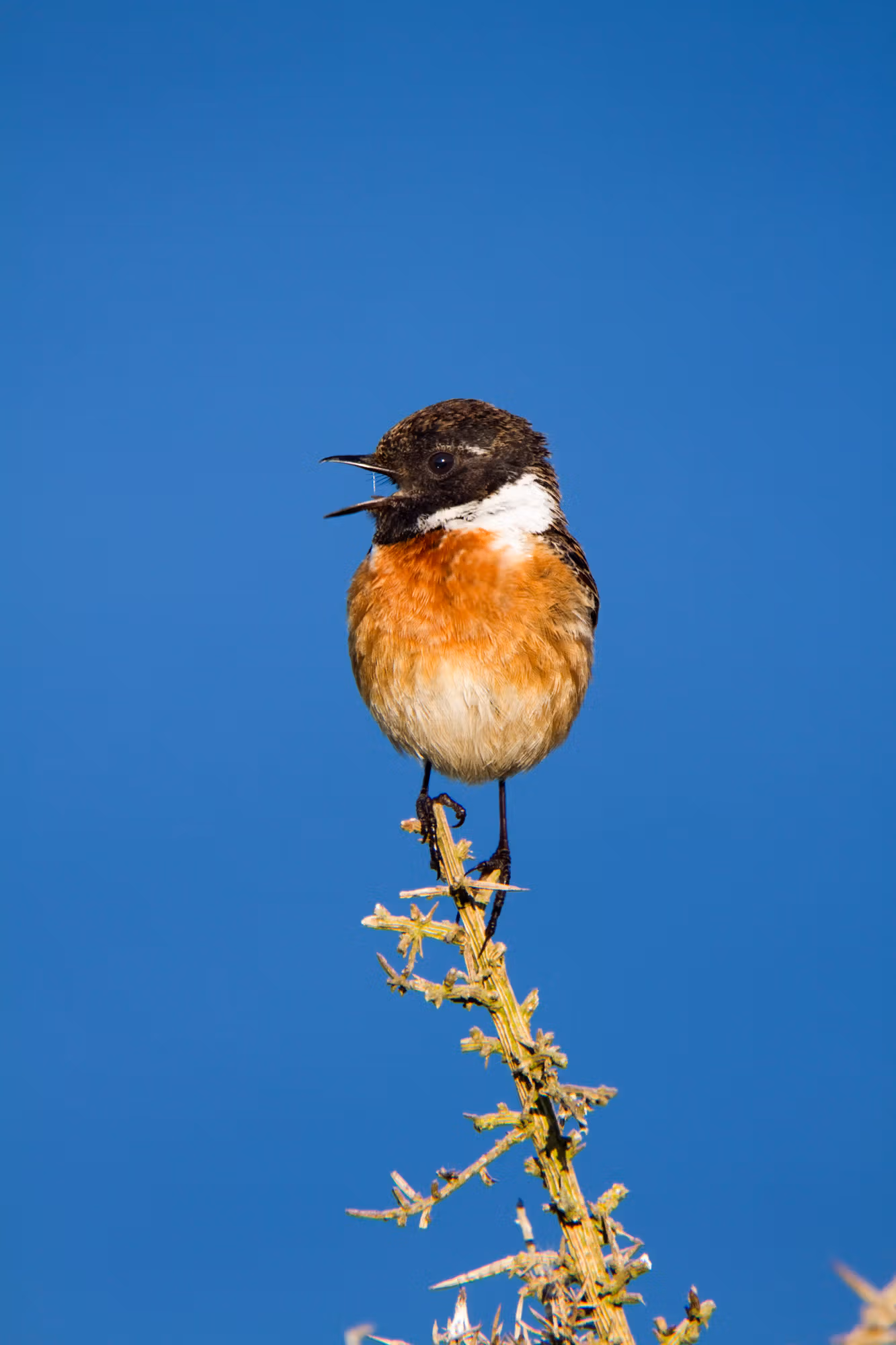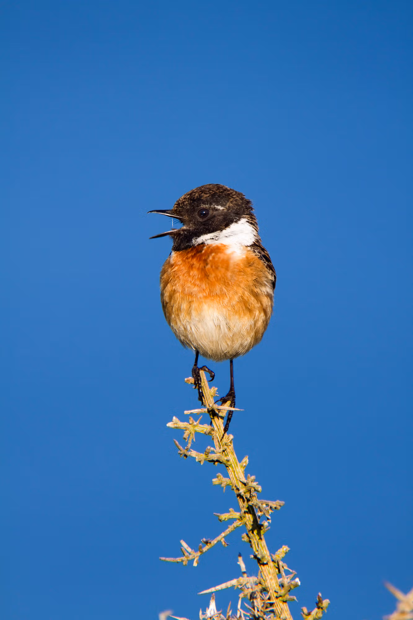 The avian action starts immediately, so settle into a sand dune and get ready. Check out the bushes around Gwithian for the charming stonechat. Males are brightly coloured with a black head and orange breast, females are more subtly toned but both sit on top of bushes and fence posts to make their stone-tapping calls.