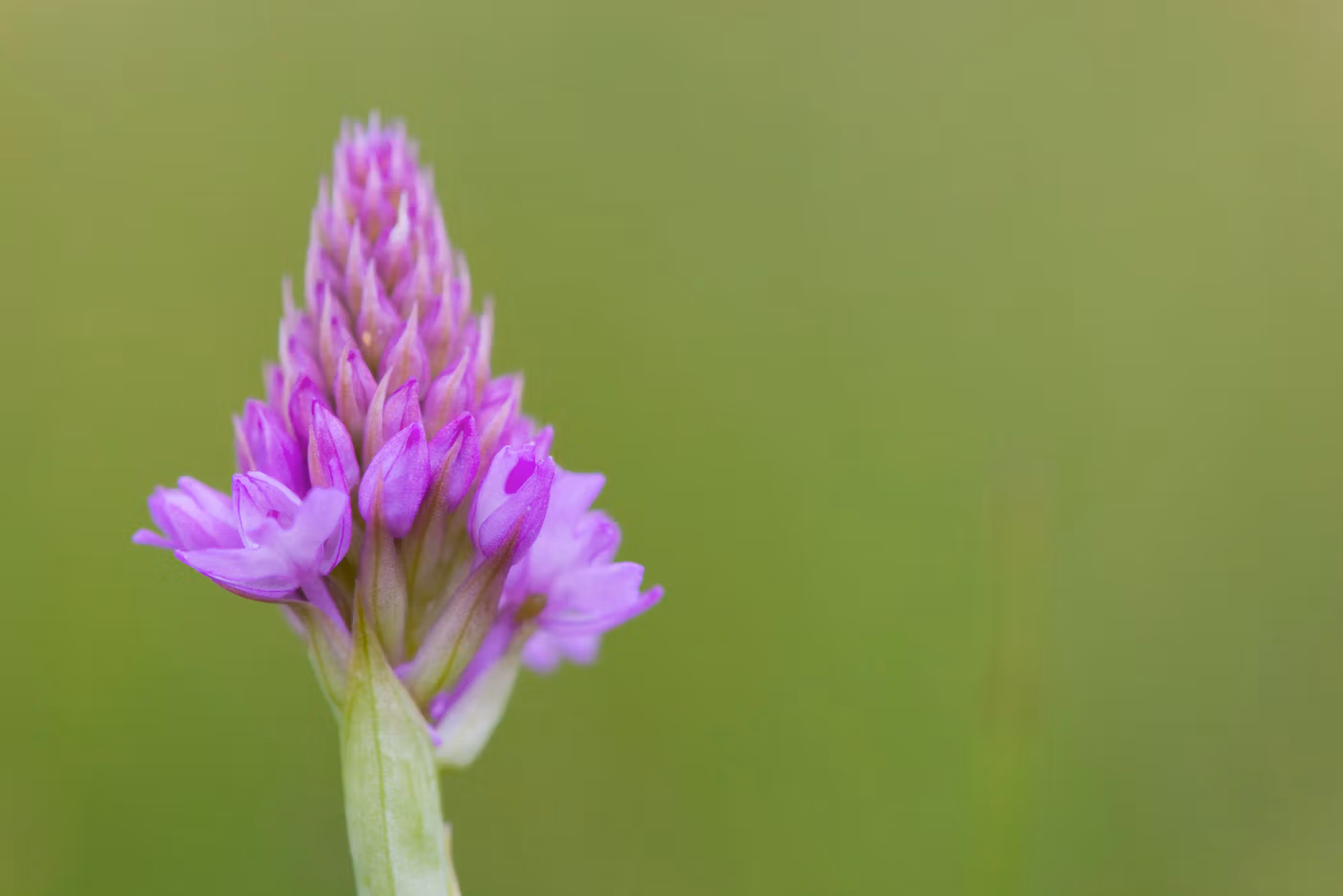 Scattered throughout the area are patches of bird’s-foot trefoil with its vivid yellow flowers, attractive to a wide range of insects. Lady’s bedstraw is another yellow flower, this one was used to provide a sweet scent to a straw mattress! Standing proud of these in late June and July are the pyramidal orchids, their tall, leafless stems, are topped with a beautiful pyramidal-shaped pink flower.