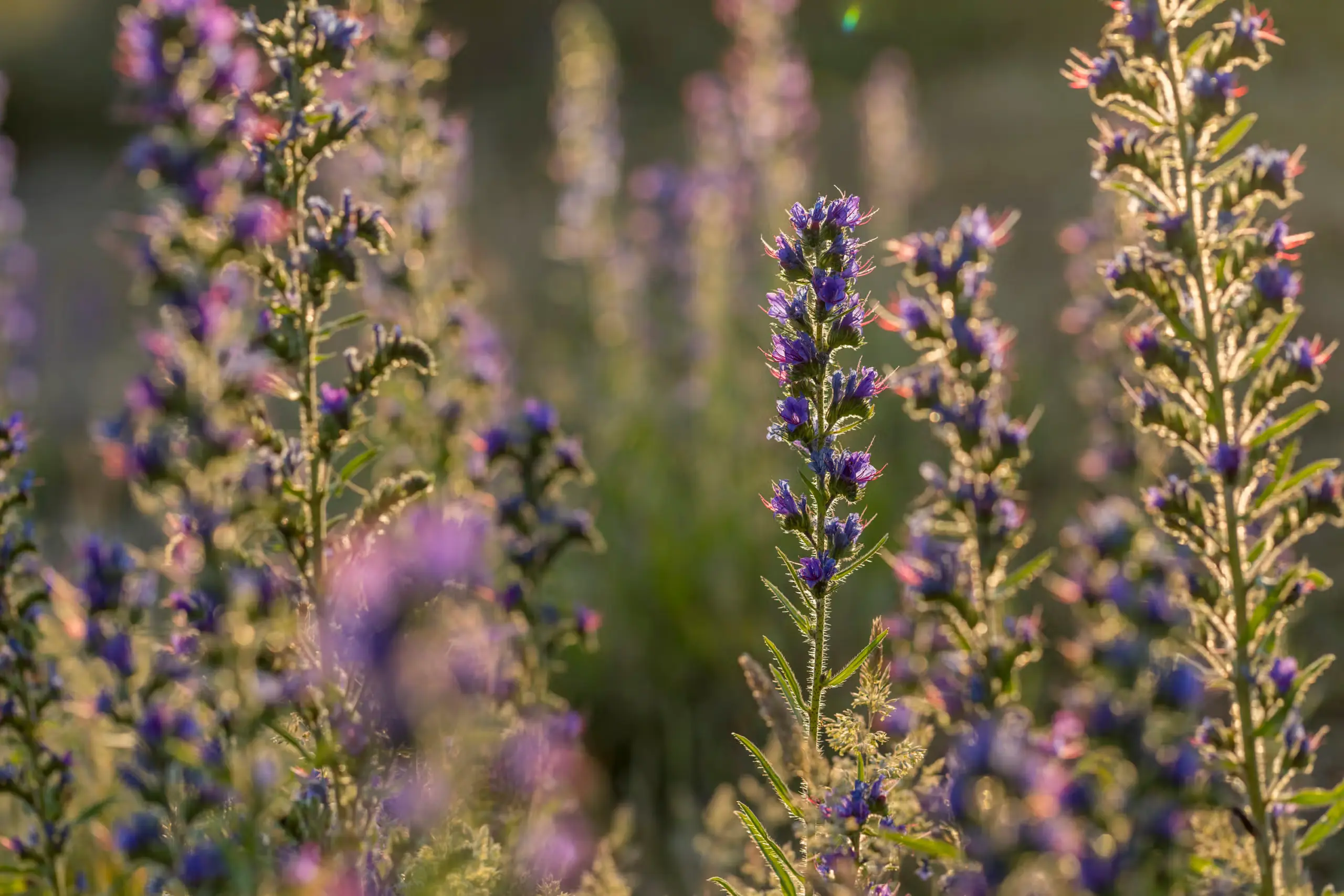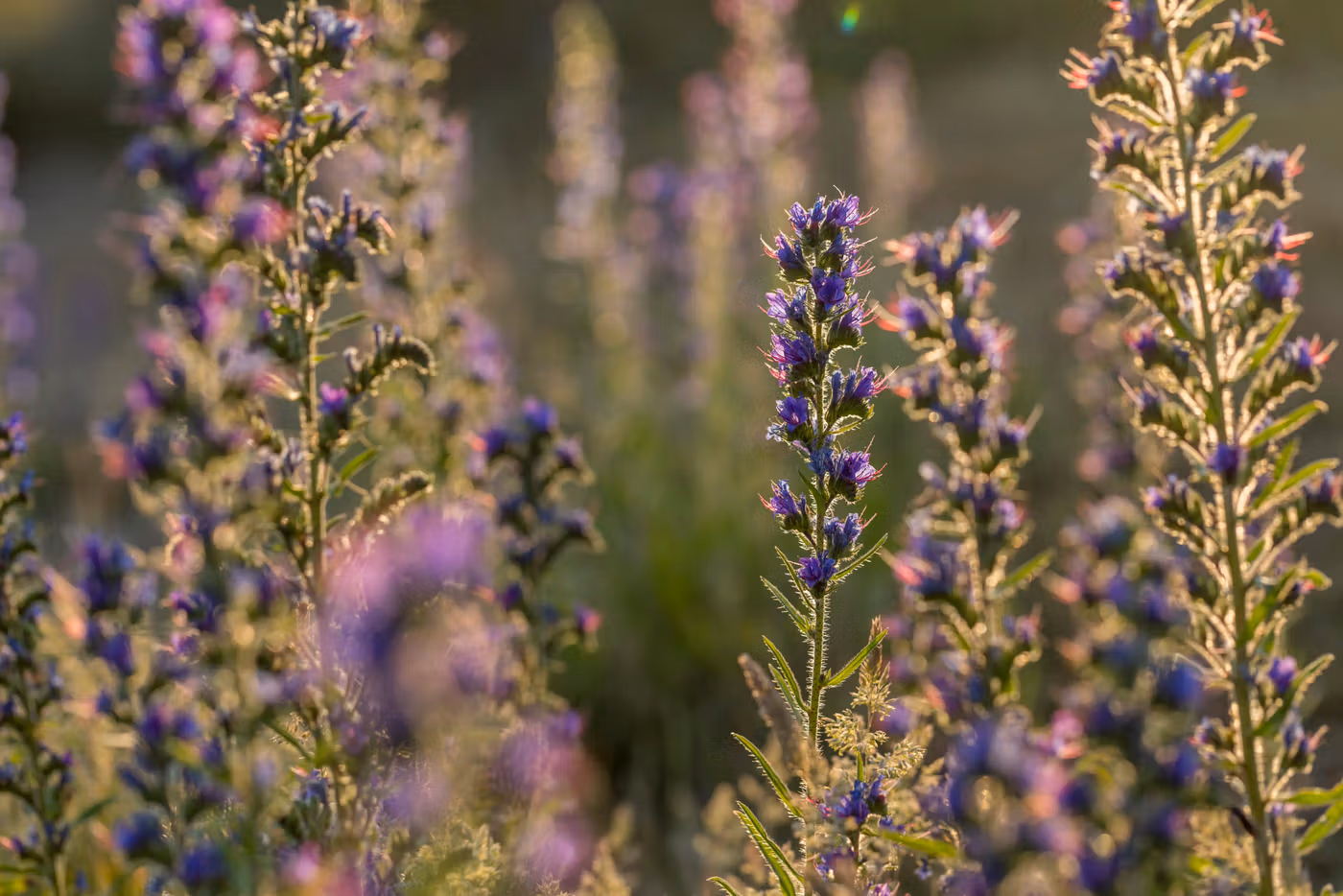 The short sword here is dominated by patches of the very purple wild thyme and, if you get down on your hand and knees you should find the tiny white flowers of eyebright, a flower still used in homeopathic treatments for eye conditions. Much larger is the majestic sea holly, this is the best place in Cornwall to see their powder-blue flowers, but don’t be tempted to touch them, their spines are incredibly strong and sharp. There is another blue flower worthy of note, the viper’s bugloss was named because its stamens look like a viper’s tongue, it grows widely across the dunes and its tall bristly flower spikes look great against a setting sun.