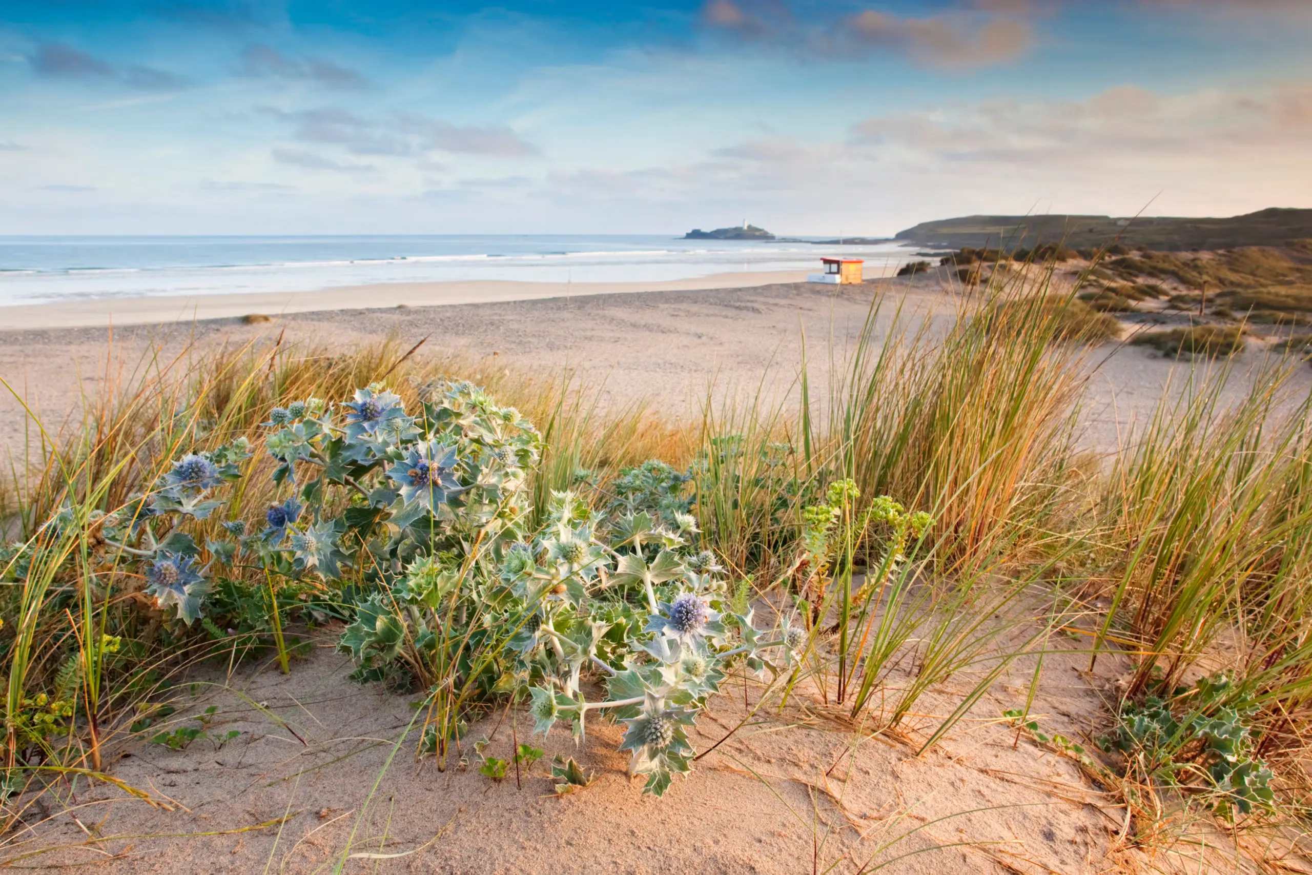 Take a walk towards Godrevy from Gwithian to see the best area for wildflowers. Not far from Gwithian you come into sight of a lake in the nature reserve called St Gothian Sands. As you walk down the slope towards the nature reserve have a look in the area a little way inland.