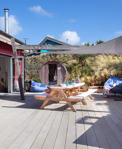 Your Cornish Beach House dream come true. Think elevated luxury, modern amenities, private hot tub and sauna. A home away from home, in the middle of a natural playground.