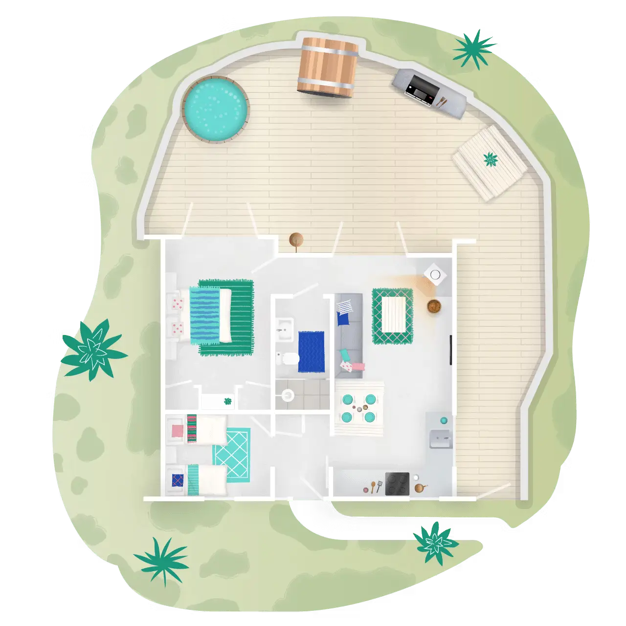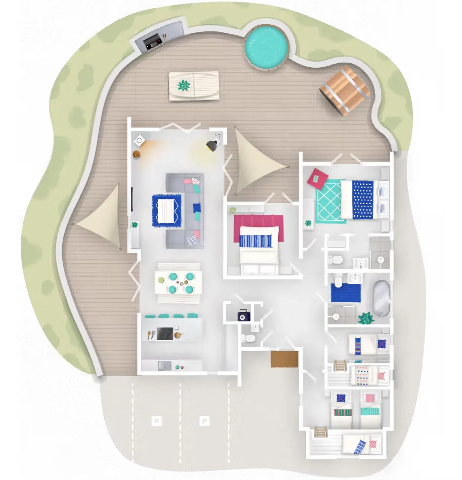 Our beach houses are spacious and light, centred around an open-plan cooking, dining and in-house entertainment area. Kitchens are smart and well kitted-out, while our sofas are deep and cosy.